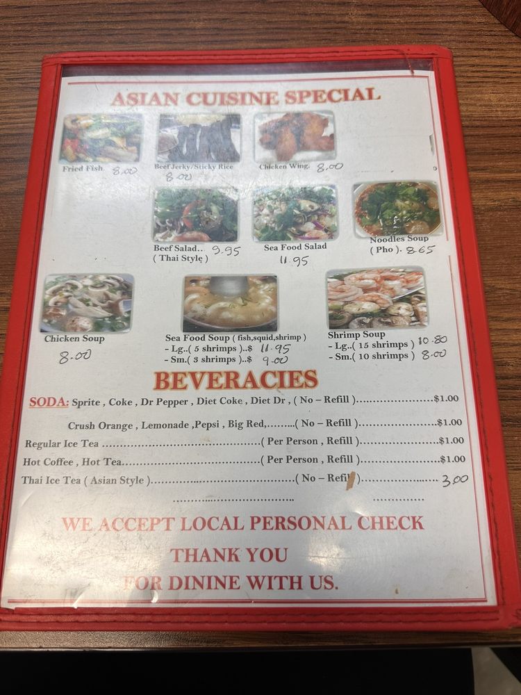 Welcome to Asian Cuisine Littlefield, where authentic Chinese dishes come alive in the heart of Littlefield, Texas. Nestled at 1001 E Waylon Jennings Blvd, this hidden gem offers a delightful menu brimming with culinary treasures. Highlighting the menu are specialties such as Fried Fish, Papaya Salad, and Chicken Soup. Seafood lovers will appreciate the Shrimp Prio Wan and Sweet And Sour Shrimp, all crafted to perfection.